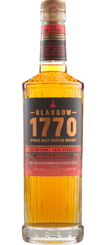Glasgow 1770 The Original Cask Strength ist eine Small Batch Abfüllung, die in unregelmäßigen Abständen auf dem Markt erscheint. Es handelt sich um eine Abfüllung des Glasgow 1770 The Original in Fassstärke, also abgefüllt, ohne mit Wasser verdünnt zu werden.