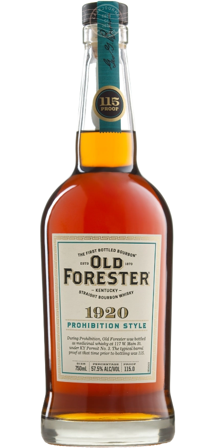 Old Forester 1920 Prohibition Style ist eine Small Batch Abfüllung, welche mit einem besonders hohen Alkoholgehalt von 57,50 % vol. (115 Proof) abgefüllt wird. Damit soll die geschmackliche Intensität des Bourbon Whiskey erreicht werden, wie er in den 1920er Jahren zur Zeit der Prohibition hergestellt wurde. Old Forester war damals eine von nur sechs Brennereien in Kentucky, die während der Prohibition weiter Bourbon Whiskey für medizinische Zwecke herstellen und abfüllen durften.