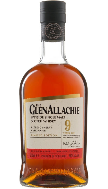 The GlenAllachie 9 Years Oloroso Sherry Cask Finish reifte zunächst in ehemaligen Bourbonfässern und erhielt eine anschließende Nachreifung in erstmals befüllten Oloroso Sherryfässern. Dabei bekommt der Whisky eine außerordentlich dunkle Farbe und bringt Noten von Orangenschale, Pflaume, Kirsche und Aprikose zum Vorschein sowie Anklänge von Honig, Marzipan, Zimt, Muskat und verschiedenen Nüssen. Dabei tun dem Whisky ein paar Tropfen Wasser gut.